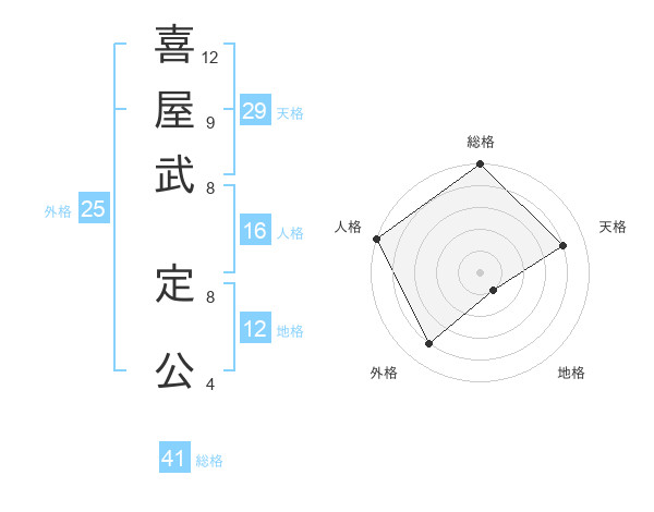 喜屋武 定公さんを姓名の画数から五運を鑑定