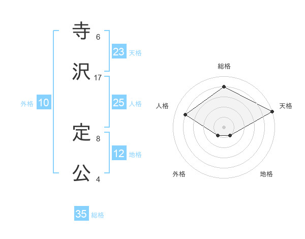 寺沢 定公さんの総格は35画の4点!