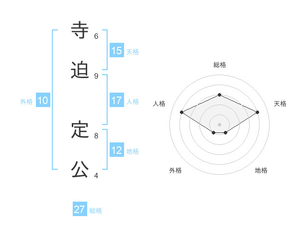 寺迫 定公さんを姓名の画数から五運を鑑定