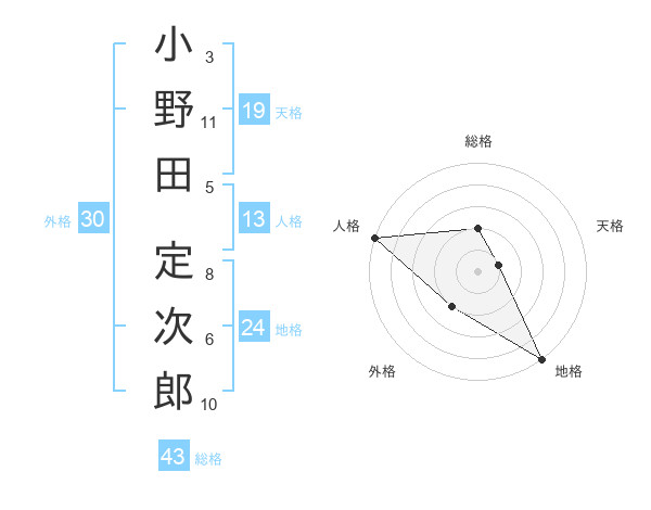 小野田 定次郎さんを姓名の画数から五運を鑑定