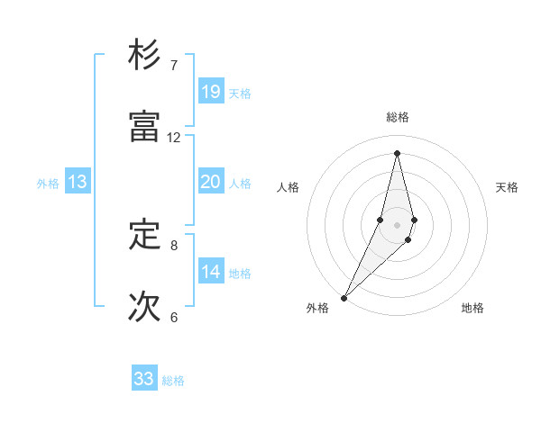 杉富 定次さんの外格は13画の5点!