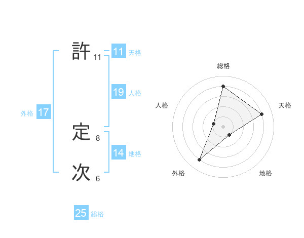 許 定次さんの総格は25画の4点!