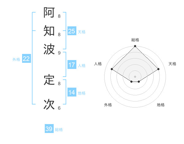 阿知波 定次さんを姓名の画数から五運を鑑定
