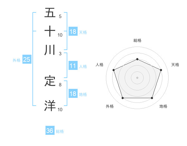 五十川 定洋さんの総格は36画の3点!