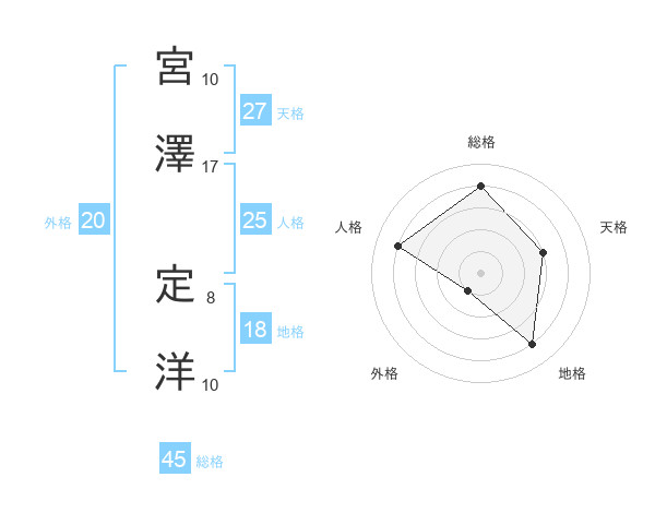 宮澤 定洋さんを姓名の画数から五運を鑑定