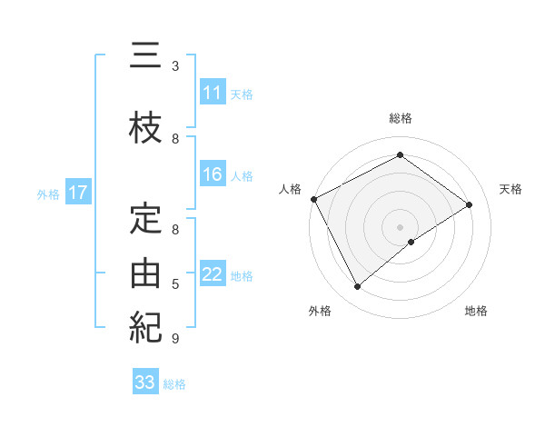 三枝 定由紀さんを姓名の画数から五運を鑑定