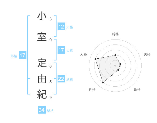 小室 定由紀さんの天格は12画の1点!