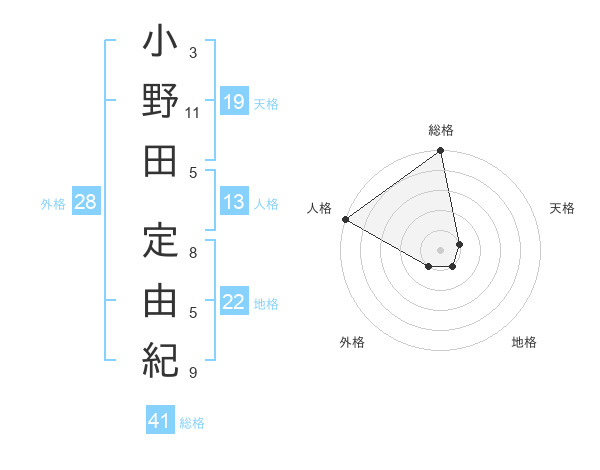 小野田 定由紀さんを姓名の画数から五運を鑑定