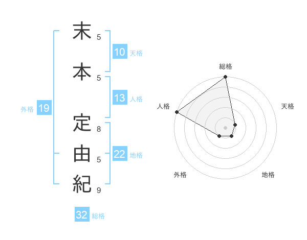 末本 定由紀さんを姓名の画数から五運を鑑定