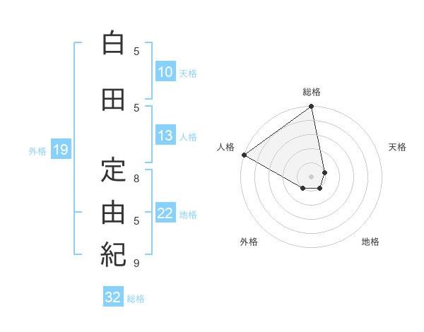 白田 定由紀さんの外格は19画の1点!