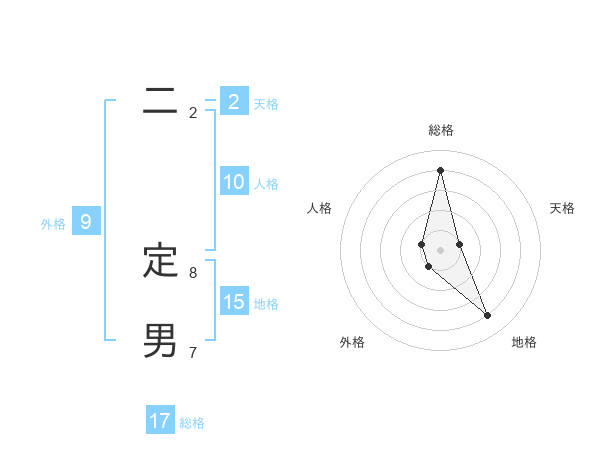 二 定男さんの総格は17画の4点!
