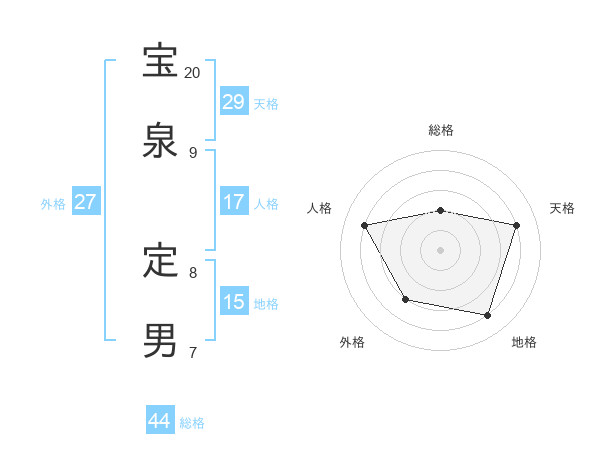 宝泉 定男さんを姓名の画数から五運を鑑定
