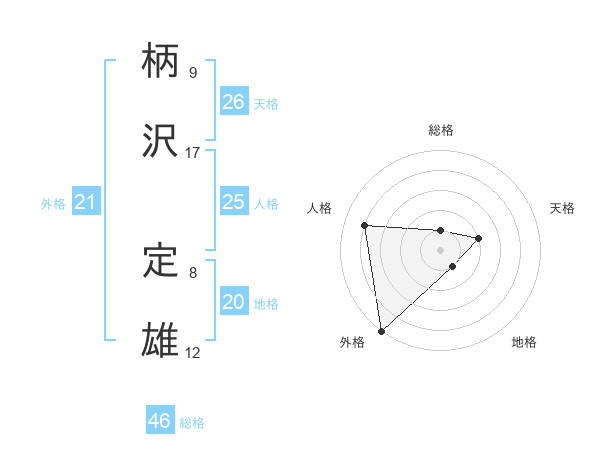 柄沢 定雄さんを姓名の画数から五運を鑑定