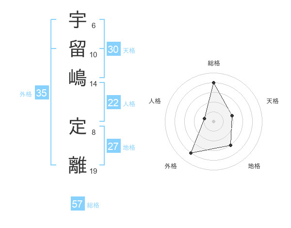宇留嶋 定離さんを姓名の画数から五運を鑑定