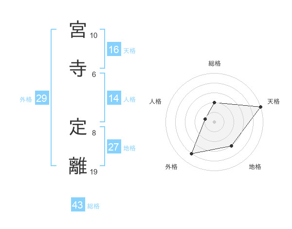 宮寺 定離さんの総格は43画の2点!
