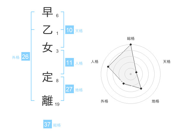 早乙女 定離さんの総格は37画の5点!