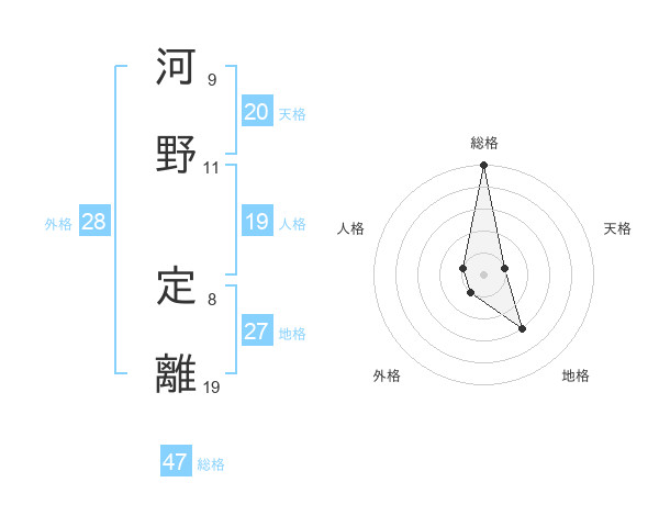 河野 定離さんの総格は47画の5点!