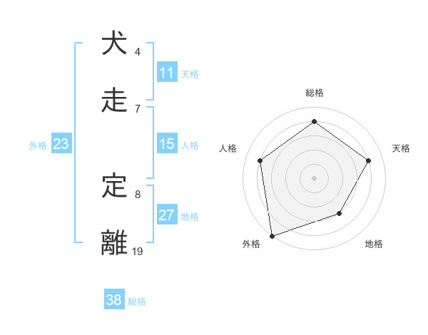 犬走 定離さんの総格は38画の4点!