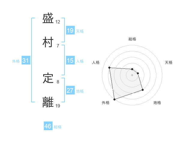 盛村 定離さんの天格は19画の1点