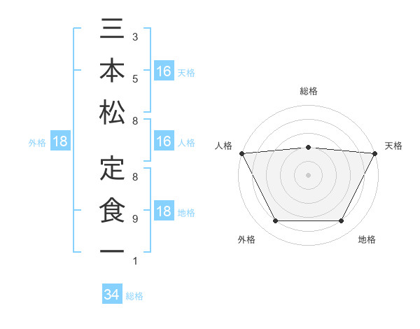 三本松 定食一さんを姓名の画数から五運を鑑定
