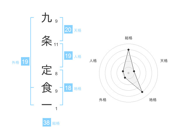 九条 定食一さんの総格は38画の4点!