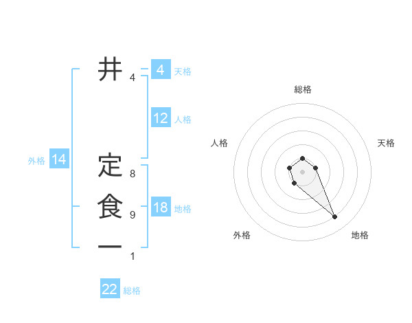 井 定食一さんの総格は22画の1点!