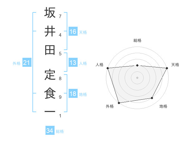 坂井田 定食一さんを姓名の画数から五運を鑑定