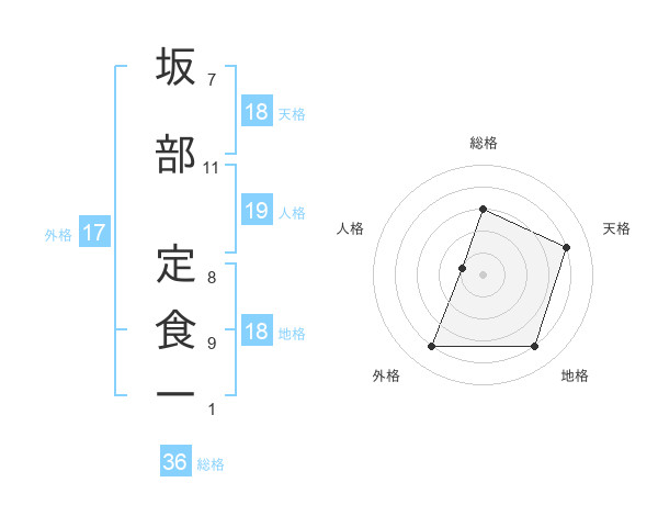 坂部 定食一さんを姓名の画数から五運を鑑定