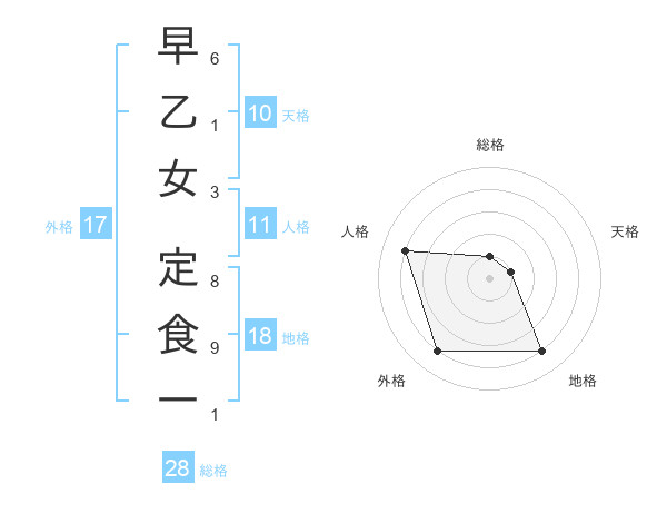 早乙女 定食一さんの総格は28画の1点!