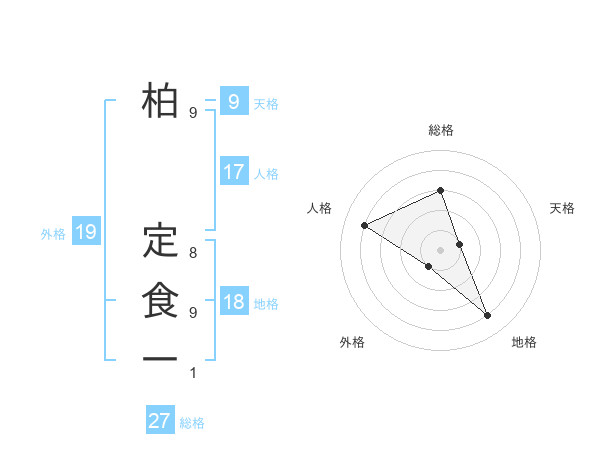 柏 定食一さんの総格は27画の3点!