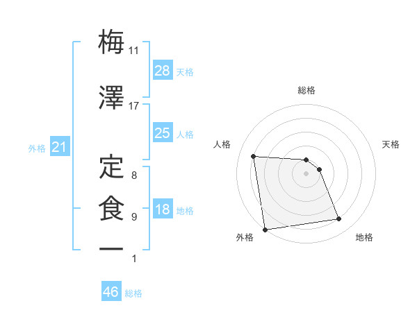 梅澤 定食一さんの外格は21画の5点!