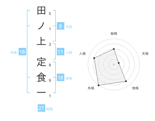 田ノ上 定食一さんを姓名の画数から五運を鑑定