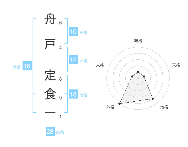 舟戸 定食一さんを姓名の画数から五運を鑑定