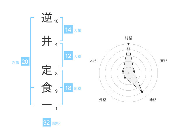 逆井 定食一さんを姓名の画数から五運を鑑定