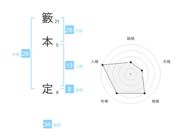 籔本 定さんの人格は13画の5点!