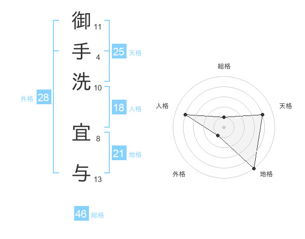 御手洗 宜与さんを姓名の画数から五運を鑑定