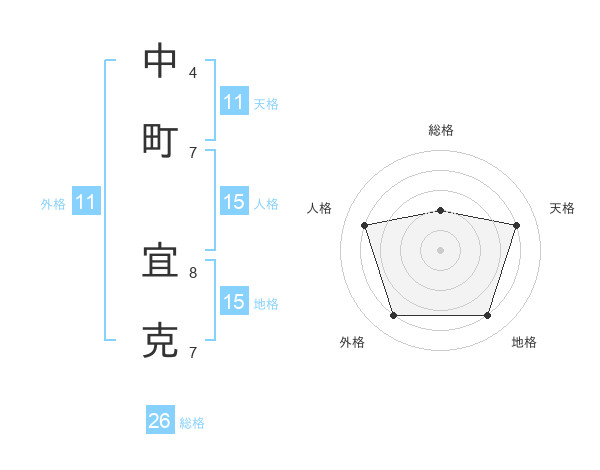 中町 宜克さんの総格は26画の2点!