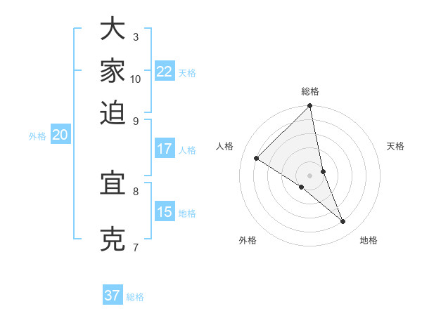 大家迫 宜克さんの総格は37画の5点!