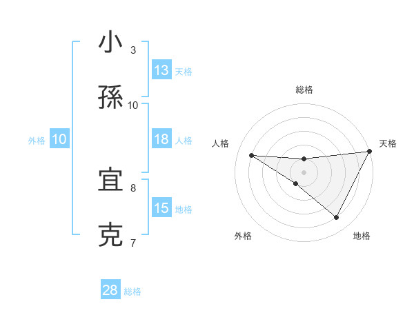 小孫 宜克さんの総格は28画の1点!
