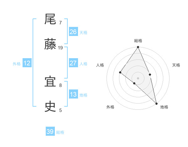 尾藤 宜史さんの天格は26画の2点!