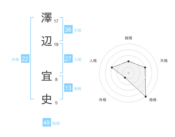 澤辺 宜史さんの総格は49画の2点!