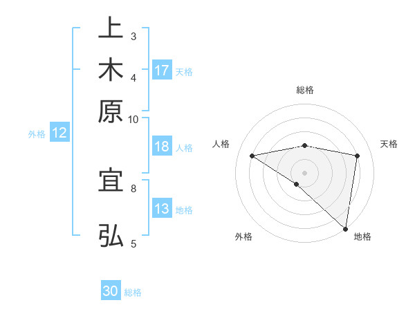上木原 宜弘さんの天格は17画の4点