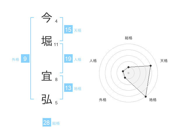 今堀 宜弘さんを姓名の画数から五運を鑑定