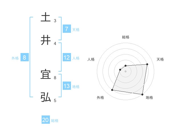 土井 宜弘さんを姓名の画数から五運を鑑定