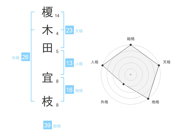 榎木田 宜枝さんを姓名の画数から五運を鑑定