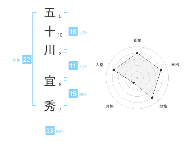 五十川 宜秀さんを姓名の画数から五運を鑑定