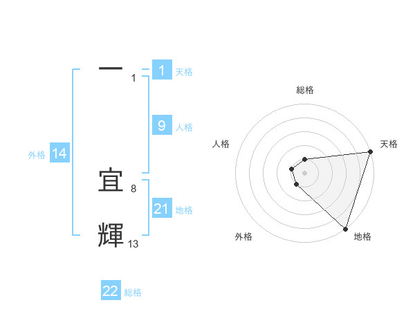 一 宜輝さんの総格は22画の1点!