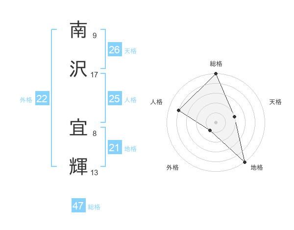 南沢 宜輝さんを姓名の画数から五運を鑑定