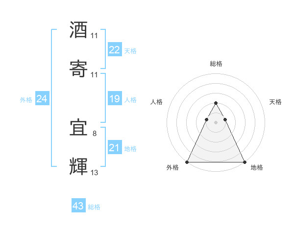 酒寄 宜輝さんの天格は22画の1点!