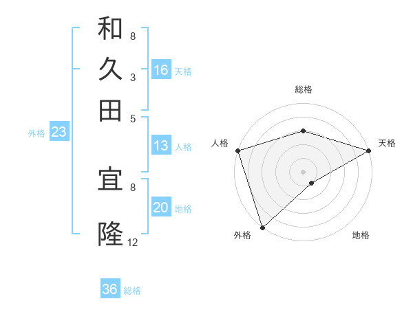 和久田 宜隆さんの天格は16画の5点!